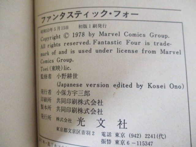 今回お譲りして頂きましたコミック本の中から、ご紹介したい作品は光文社版『ファンタスティック・フォー』です。