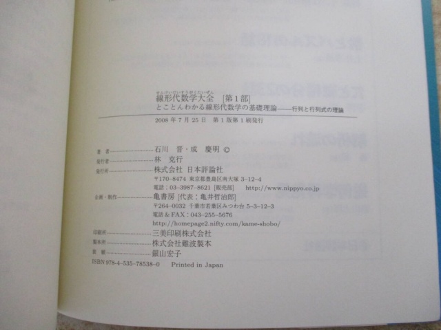 『線形代数学大全』全3冊をまとめてお譲りして頂きました。